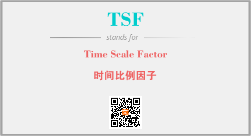 上述内容是“Time Scale Factor”作为“TSF”的缩写,解释为“时间比例因子”时的信息,以及英文缩略词TSF所代表的英文单词,其对应的中文拼音、详细解释以及在英文中的流行度和相关分类、应用领域及应用示例等。