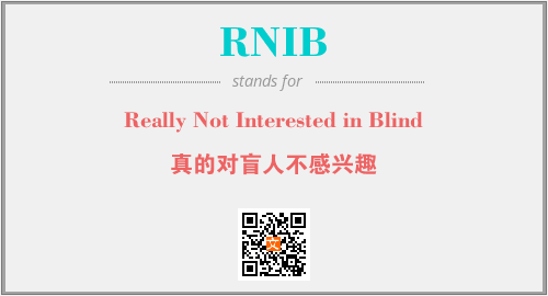 英文缩略词“RNIB”经常作为“Really Not Interested in Blind”的英文缩写来使用,中文表示:“真的对盲人不感兴趣”。本文将详细介绍英文缩写词RNIB所代表英文单词,其对应的中文拼音、详细解释以及在英语中的流行度。此外,还有关于缩略词RNIB的分类、应用领域及相关应用示例等。