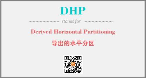 英文缩略词“DHP”经常作为“Derived Horizontal Partitioning”的英文缩写来使用,中文表示:“导出的水平分区”。本文将详细介绍英文缩写词DHP所代表英文单词,其对应的中文拼音、详细解释以及在英语中的流行度。此外,还有关于缩略词DHP的分类、应用领域及相关应用示例等。