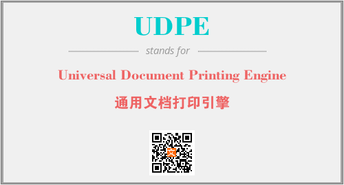 英文缩略词“UDPE”经常作为“Universal Document Printing Engine”的英文缩写来使用,中文表示:“通用文档打印引擎”。本文将详细介绍英文缩写词UDPE所代表英文单词,其对应的中文拼音、详细解释以及在英语中的流行度。此外,还有关于缩略词UDPE的分类、应用领域及相关应用示例等。