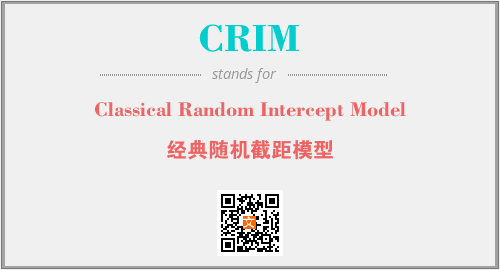 上述内容是“Classical Random Intercept Model”作为“CRIM”的缩写,解释为“经典随机截距模型”时的信息,以及英文缩略词CRIM所代表的英文单词,其对应的中文拼音、详细解释以及在英文中的流行度和相关分类、应用领域及应用示例等。