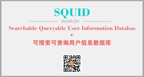 上述内容是“Searchable Queryable User Information Database”作为“SQUID”的缩写,解释为“可搜索可查询用户信息数据库”时的信息,以及英文缩略词SQUID所代表的英文单词,其对应的中文拼音、详细解释以及在英文中的流行度和相关分类、应用领域及应用示例等。