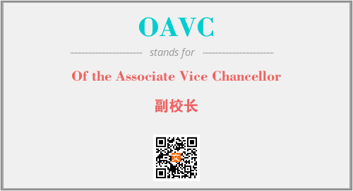 英文缩略词“OAVC”经常作为“Of the Associate Vice Chancellor”的英文缩写来使用,中文表示:“副校长”。本文将详细介绍英文缩写词OAVC所代表英文单词,其对应的中文拼音、详细解释以及在英语中的流行度。此外,还有关于缩略词OAVC的分类、应用领域及相关应用示例等。