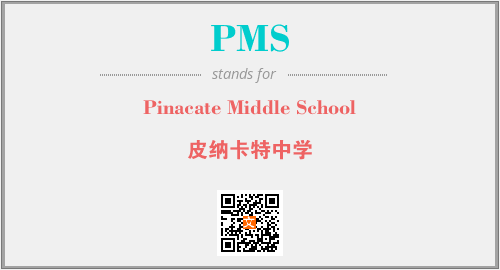 上述内容是“Pinacate Middle School”作为“PMS”的缩写,解释为“皮纳卡特中学”时的信息,以及英文缩略词PMS所代表的英文单词,其对应的中文拼音、详细解释以及在英文中的流行度和相关分类、应用领域及应用示例等。