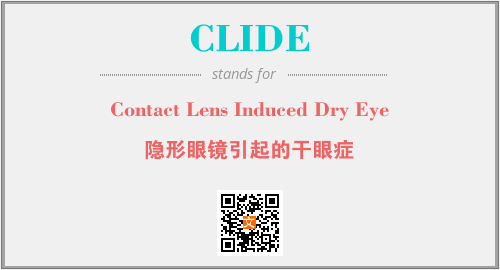 英文缩略词“CLIDE”经常作为“Contact Lens Induced Dry Eye”的英文缩写来使用,中文表示:“隐形眼镜引起的干眼症”。本文将详细介绍英文缩写词CLIDE所代表英文单词,其对应的中文拼音、详细解释以及在英语中的流行度。此外,还有关于缩略词CLIDE的分类、应用领域及相关应用示例等。