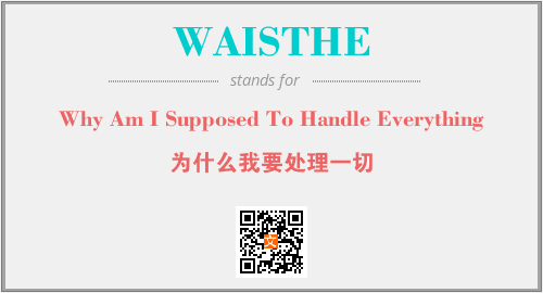 上述内容是“Why Am I Supposed To Handle Everything”作为“WAISTHE”的缩写,解释为“为什么我要处理一切”时的信息,以及英文缩略词WAISTHE所代表的英文单词,其对应的中文拼音、详细解释以及在英文中的流行度和相关分类、应用领域及应用示例等。