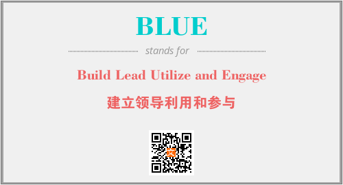 上述内容是“Build Lead Utilize and Engage”作为“BLUE”的缩写,解释为“建立领导利用和参与”时的信息,以及英文缩略词BLUE所代表的英文单词,其对应的中文拼音、详细解释以及在英文中的流行度和相关分类、应用领域及应用示例等。