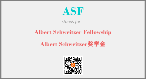 上述内容是“Albert Schweitzer Fellowship”作为“ASF”的缩写,解释为“Albert Schweitzer奖学金”时的信息,以及英文缩略词ASF所代表的英文单词,其对应的中文拼音、详细解释以及在英文中的流行度和相关分类、应用领域及应用示例等。