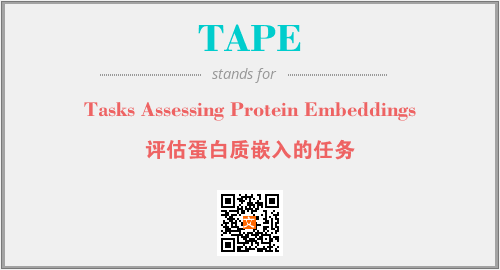上述内容是“Tasks Assessing Protein Embeddings”作为“TAPE”的缩写,解释为“评估蛋白质嵌入的任务”时的信息,以及英文缩略词TAPE所代表的英文单词,其对应的中文拼音、详细解释以及在英文中的流行度和相关分类、应用领域及应用示例等。