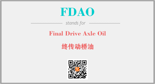 上述内容是“Final Drive Axle Oil”作为“FDAO”的缩写,解释为“终传动桥油”时的信息,以及英文缩略词FDAO所代表的英文单词,其对应的中文拼音、详细解释以及在英文中的流行度和相关分类、应用领域及应用示例等。
