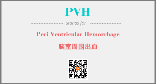 英文缩略词“PVH”经常作为“Peri Ventricular Hemorrhage”的英文缩写来使用,中文表示:“脑室周围出血”。本文将详细介绍英文缩写词PVH所代表英文单词,其对应的中文拼音、详细解释以及在英语中的流行度。此外,还有关于缩略词PVH的分类、应用领域及相关应用示例等。