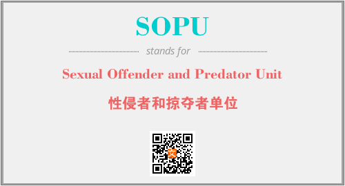 上述内容是“Sexual Offender and Predator Unit”作为“SOPU”的缩写,解释为“性侵者和掠夺者单位”时的信息,以及英文缩略词SOPU所代表的英文单词,其对应的中文拼音、详细解释以及在英文中的流行度和相关分类、应用领域及应用示例等。