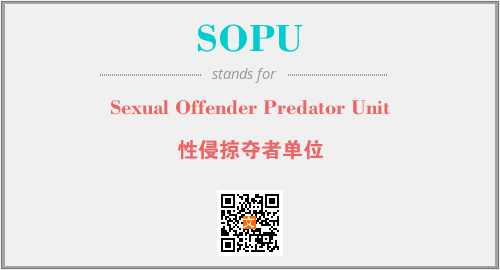 上述内容是“Sexual Offender Predator Unit”作为“SOPU”的缩写,解释为“性侵掠夺者单位”时的信息,以及英文缩略词SOPU所代表的英文单词,其对应的中文拼音、详细解释以及在英文中的流行度和相关分类、应用领域及应用示例等。