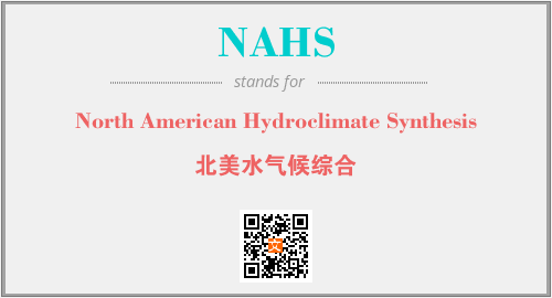 上述内容是“North American Hydroclimate Synthesis”作为“NAHS”的缩写,解释为“北美水气候综合”时的信息,以及英文缩略词NAHS所代表的英文单词,其对应的中文拼音、详细解释以及在英文中的流行度和相关分类、应用领域及应用示例等。