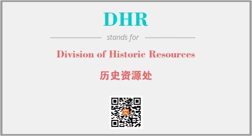 上述内容是“Division of Historic Resources”作为“DHR”的缩写,解释为“历史资源处”时的信息,以及英文缩略词DHR所代表的英文单词,其对应的中文拼音、详细解释以及在英文中的流行度和相关分类、应用领域及应用示例等。