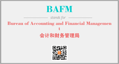 上述内容是“Bureau of Accounting and Financial Management”作为“BAFM”的缩写,解释为“会计和财务管理局”时的信息,以及英文缩略词BAFM所代表的英文单词,其对应的中文拼音、详细解释以及在英文中的流行度和相关分类、应用领域及应用示例等。