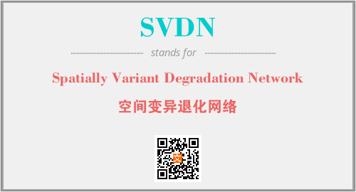 上述内容是“Spatially Variant Degradation Network”作为“SVDN”的缩写,解释为“空间变异退化网络”时的信息,以及英文缩略词SVDN所代表的英文单词,其对应的中文拼音、详细解释以及在英文中的流行度和相关分类、应用领域及应用示例等。