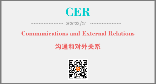 上述内容是“Communications and External Relations”作为“CER”的缩写,解释为“沟通和对外关系”时的信息,以及英文缩略词CER所代表的英文单词,其对应的中文拼音、详细解释以及在英文中的流行度和相关分类、应用领域及应用示例等。