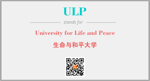 英文缩略词“ULP”经常作为“University for Life and Peace”的英文缩写来使用,中文表示:“生命与和平大学”。本文将详细介绍英文缩写词ULP所代表英文单词,其对应的中文拼音、详细解释以及在英语中的流行度。此外,还有关于缩略词ULP的分类、应用领域及相关应用示例等。