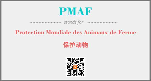 上述内容是“Protection Mondiale des Animaux de Ferme”作为“PMAF”的缩写,解释为“保护动物”时的信息,以及英文缩略词PMAF所代表的英文单词,其对应的中文拼音、详细解释以及在英文中的流行度和相关分类、应用领域及应用示例等。