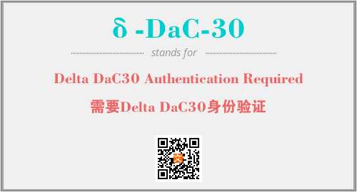 上述内容是“Delta DaC30 Authentication Required”作为“δ-DaC-30”的缩写,解释为“需要Delta DaC30身份验证”时的信息,以及英文缩略词δ-DaC-30所代表的英文单词,其对应的中文拼音、详细解释以及在英文中的流行度和相关分类、应用领域及应用示例等。