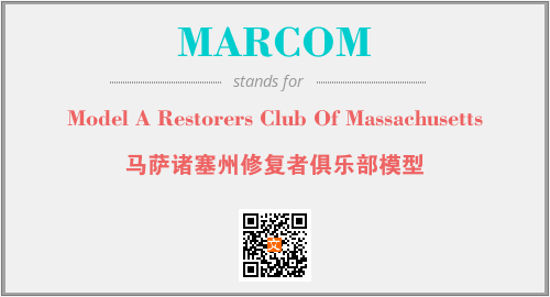 英文缩略词“MARCOM”经常作为“Model A Restorers Club Of Massachusetts”的英文缩写来使用,中文表示:“马萨诸塞州修复者俱乐部模型”。本文将详细介绍英文缩写词MARCOM所代表英文单词,其对应的中文拼音、详细解释以及在英语中的流行度。此外,还有关于缩略词MARCOM的分类、应用领域及相关应用示例等。
