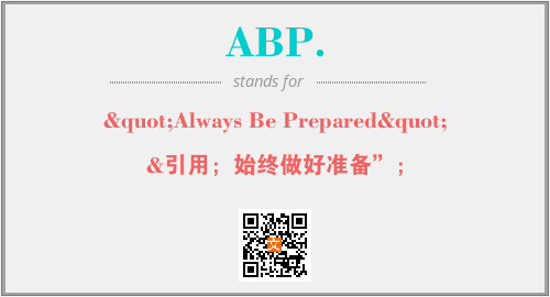 英文缩略词“ABP.”经常作为“"Always Be Prepared"”的英文缩写来使用,中文表示:“&引用;始终做好准备”;”。本文将详细介绍英文缩写词ABP.所代表英文单词,其对应的中文拼音、详细解释以及在英语中的流行度。此外,还有关于缩略词ABP.的分类、应用领域及相关应用示例等。