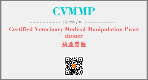 英文缩略词“CVMMP”经常作为“Certified Veterinary Medical Manipulation Practitioner”的英文缩写来使用,中文表示:“执业兽医”。本文将详细介绍英文缩写词CVMMP所代表英文单词,其对应的中文拼音、详细解释以及在英语中的流行度。此外,还有关于缩略词CVMMP的分类、应用领域及相关应用示例等。