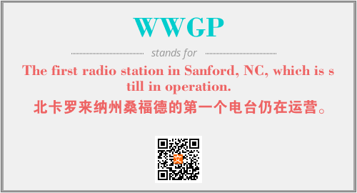 以上为The first radio station in Sanford, NC, which is still in operation.英文缩略词WWGP的中文解释,以及该英文缩写在英语的流行度、分类和应用领域方面的信息。