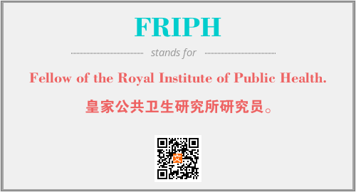 上述内容是“Fellow of the Royal Institute of Public Health.”作为“FRIPH”的缩写,解释为“皇家公共卫生研究所研究员。”时的信息,以及英文缩略词FRIPH所代表的英文单词,其对应的中文拼音、详细解释以及在英文中的流行度和相关分类、应用领域及应用示例等。