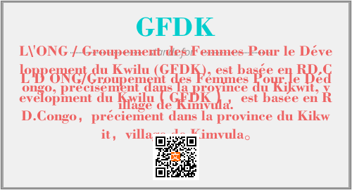 "GFDK - L D ONG/Groupement des Femmes Pour le Dédevelopment du Kwilu(GFDK),est basée en RD.Congo,préciement dans la province du Kikwit,village de Kimvula。 ." [引用日期]. <https://www.suoxie123.com/a/65ACB.html>.