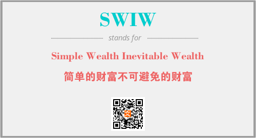 以上为Simple Wealth Inevitable Wealth英文缩略词SWIW的中文解释,以及该英文缩写在英语的流行度、分类和应用领域方面的信息。