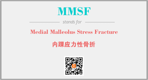 以上为Medial Malleolus Stress Fracture英文缩略词MMSF的中文解释,以及该英文缩写在英语的流行度、分类和应用领域方面的信息。