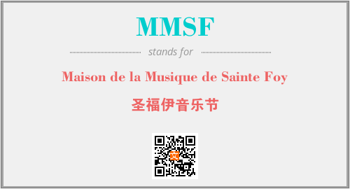 上述内容是“Maison de la Musique de Sainte Foy”作为“MMSF”的缩写,解释为“圣福伊音乐节”时的信息,以及英文缩略词MMSF所代表的英文单词,其对应的中文拼音、详细解释以及在英文中的流行度和相关分类、应用领域及应用示例等。