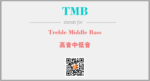 英文缩略词“TMB”经常作为“Treble Middle Bass”的英文缩写来使用,中文表示:“高音中低音”。本文将详细介绍英文缩写词TMB所代表英文单词,其对应的中文拼音、详细解释以及在英语中的流行度。此外,还有关于缩略词TMB的分类、应用领域及相关应用示例等。