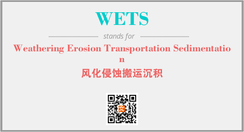 上述内容是“Weathering Erosion Transportation Sedimentation”作为“WETS”的缩写,解释为“风化侵蚀搬运沉积”时的信息,以及英文缩略词WETS所代表的英文单词,其对应的中文拼音、详细解释以及在英文中的流行度和相关分类、应用领域及应用示例等。