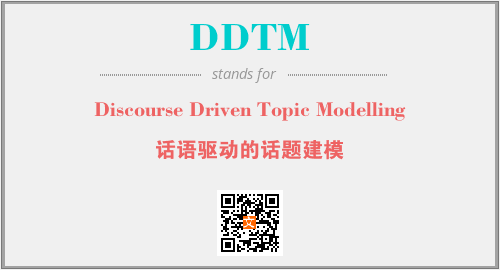 上述内容是“Discourse Driven Topic Modelling”作为“DDTM”的缩写,解释为“话语驱动的话题建模”时的信息,以及英文缩略词DDTM所代表的英文单词,其对应的中文拼音、详细解释以及在英文中的流行度和相关分类、应用领域及应用示例等。