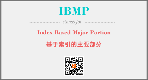 上述内容是“Index Based Major Portion”作为“IBMP”的缩写,解释为“基于索引的主要部分”时的信息,以及英文缩略词IBMP所代表的英文单词,其对应的中文拼音、详细解释以及在英文中的流行度和相关分类、应用领域及应用示例等。