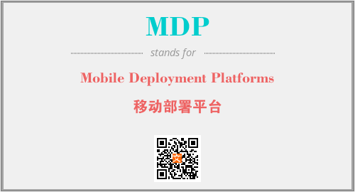 上述内容是“Mobile Deployment Platforms”作为“MDP”的缩写,解释为“移动部署平台”时的信息,以及英文缩略词MDP所代表的英文单词,其对应的中文拼音、详细解释以及在英文中的流行度和相关分类、应用领域及应用示例等。