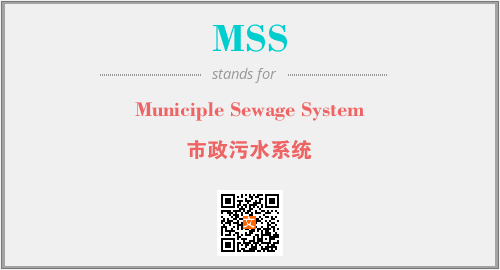 英文缩略词“MSS”经常作为“Municiple Sewage System”的英文缩写来使用,中文表示:“市政污水系统”。本文将详细介绍英文缩写词MSS所代表英文单词,其对应的中文拼音、详细解释以及在英语中的流行度。此外,还有关于缩略词MSS的分类、应用领域及相关应用示例等。