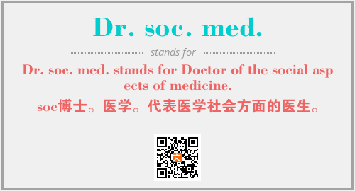 上述内容是“Dr. soc. med. stands for Doctor of the social aspects of medicine.”作为“Dr. soc. med.”的缩写,解释为“soc博士。医学。代表医学社会方面的医生。”时的信息,以及英文缩略词Dr. soc. med.所代表的英文单词,其对应的中文拼音、详细解释以及在英文中的流行度和相关分类、应用领域及应用示例等。