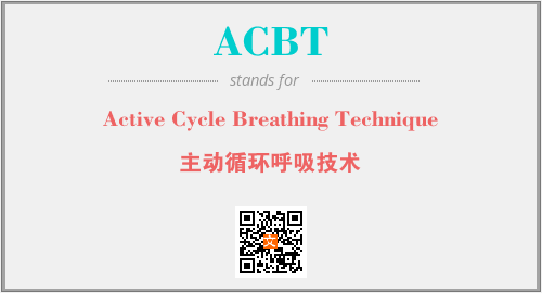 英文缩略词“ACBT”经常作为“Active Cycle Breathing Technique”的英文缩写来使用,中文表示:“主动循环呼吸技术”。本文将详细介绍英文缩写词ACBT所代表英文单词,其对应的中文拼音、详细解释以及在英语中的流行度。此外,还有关于缩略词ACBT的分类、应用领域及相关应用示例等。