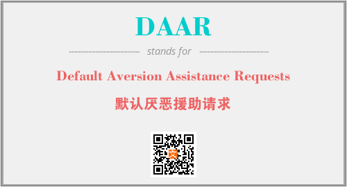 上述内容是“Default Aversion Assistance Requests”作为“DAAR”的缩写,解释为“默认厌恶援助请求”时的信息,以及英文缩略词DAAR所代表的英文单词,其对应的中文拼音、详细解释以及在英文中的流行度和相关分类、应用领域及应用示例等。
