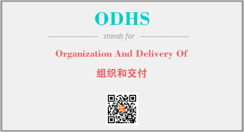 英文缩略词“ODHS”经常作为“Organization And Delivery Of”的英文缩写来使用,中文表示:“组织和交付”。本文将详细介绍英文缩写词ODHS所代表英文单词,其对应的中文拼音、详细解释以及在英语中的流行度。此外,还有关于缩略词ODHS的分类、应用领域及相关应用示例等。