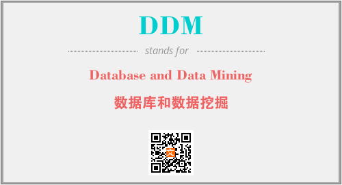 英文缩略词“DDM”经常作为“Database and Data Mining”的英文缩写来使用,中文表示:“数据库和数据挖掘”。本文将详细介绍英文缩写词DDM所代表英文单词,其对应的中文拼音、详细解释以及在英语中的流行度。此外,还有关于缩略词DDM的分类、应用领域及相关应用示例等。