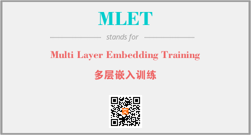 上述内容是“Multi Layer Embedding Training”作为“MLET”的缩写,解释为“多层嵌入训练”时的信息,以及英文缩略词MLET所代表的英文单词,其对应的中文拼音、详细解释以及在英文中的流行度和相关分类、应用领域及应用示例等。