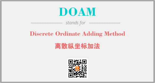 上述内容是“Discrete Ordinate Adding Method”作为“DOAM”的缩写,解释为“离散纵坐标加法”时的信息,以及英文缩略词DOAM所代表的英文单词,其对应的中文拼音、详细解释以及在英文中的流行度和相关分类、应用领域及应用示例等。