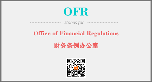 上述内容是“Office of Financial Regulations”作为“OFR”的缩写,解释为“财务条例办公室”时的信息,以及英文缩略词OFR所代表的英文单词,其对应的中文拼音、详细解释以及在英文中的流行度和相关分类、应用领域及应用示例等。