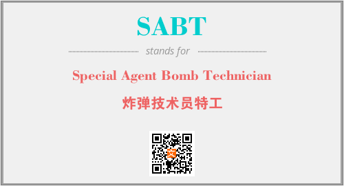 上述内容是“Special Agent Bomb Technician”作为“SABT”的缩写,解释为“炸弹技术员特工”时的信息,以及英文缩略词SABT所代表的英文单词,其对应的中文拼音、详细解释以及在英文中的流行度和相关分类、应用领域及应用示例等。