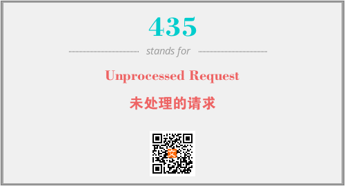 上述内容是“Unprocessed Request”作为“435”的缩写,解释为“未处理的请求”时的信息,以及英文缩略词435所代表的英文单词,其对应的中文拼音、详细解释以及在英文中的流行度和相关分类、应用领域及应用示例等。
